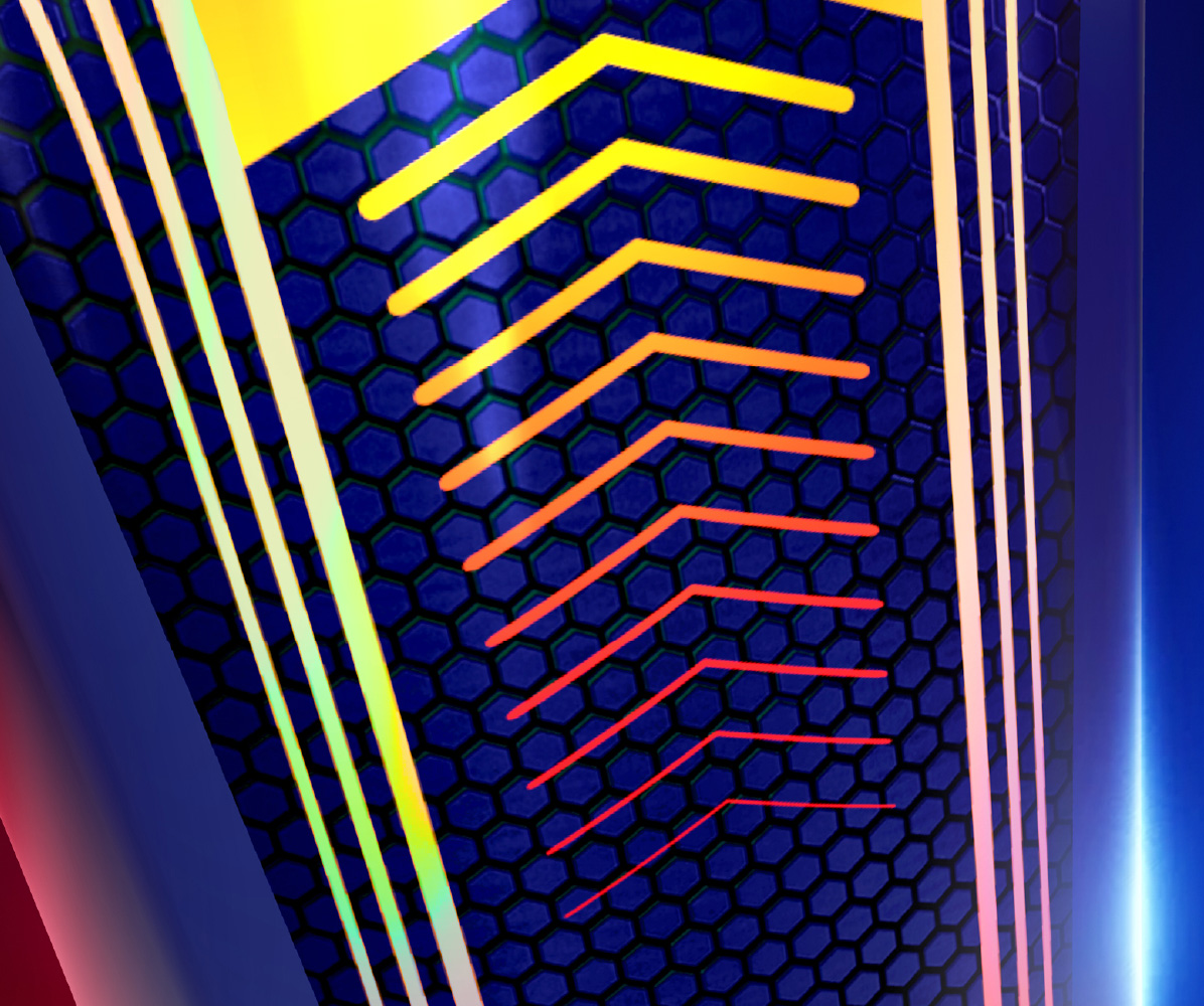 The colour palette is influenced by the Red Bull Oracle racing identity, featuring deep metallic blues contrasted with vibrant gradients of yellow, orange, and red. This combination evokes energy, power, and adrenaline, while maintaining a premium and technical feel. The hexagonal texture in the background further enhances the engineering narrative, referencing advanced materials and high-performance surfaces.