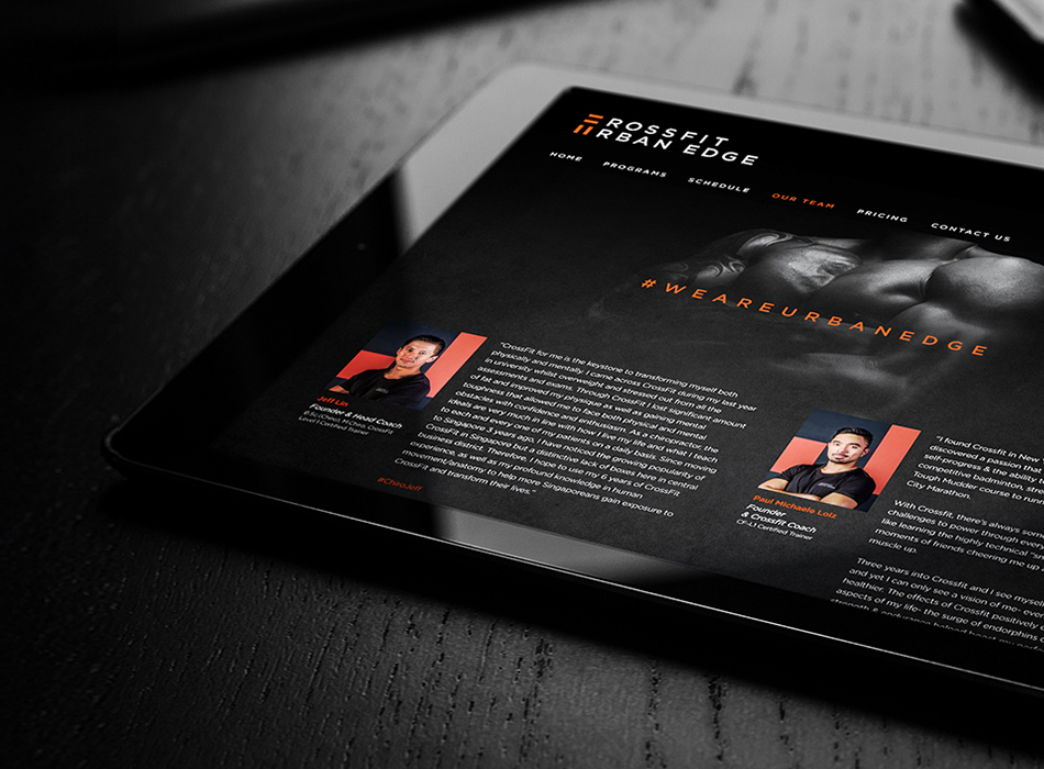 The monochromatic colour scheme of the visuals hints at the edginess of the studio. To help bring out the edge in Urban Edge, we peppered the visuals with a dash of orange. The end result is a sleek, yet edgy outlook.